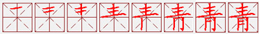 青字的基本解释: ● 青qīng ㄑㄧㄥˉ ◎ 深绿色或浅蓝色:青绿。青碧。青草。青苔。青苗。青菜。青葱。青山绿水。青云直上。万古长青(喻高尚的精神或深厚的友情永远不衰)。 ◎ 绿色的东西:踏青。青黄不接。 ◎ 靛蓝色:靛青。青紫。青出于蓝,胜于蓝。 ◎ 黑色:青布。青线。青衫。青衣。 ◎ 喻年轻:青年。青春。青工。 ◎ 竹简:青简。青史(原指写在竹简上的记事,后指史书,如“永垂青史”)。 英文翻译 blue, green, black; young |