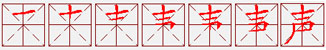 声字的基本解释: ● 声(聲)shēng ㄕㄥˉ ◎ 物体振动时所产生的能引起听觉的波:声音。声带。 ◎ 消息,音讯:声息。不通声气。 ◎ 说出来让人知道,扬言,宣称:声明。声辩(公开辩白)。声泪俱下。声嘶力竭。 ◎ 名誉:名声。 ◎ 音乐歌舞:声伎(女乐,古代的歌姬舞女)。声色。 英文翻译 sound, voice, noise; tone; music |