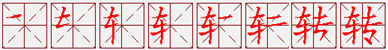 - 8 变换。 【组词】:「转变」、「转学」、「转败为胜」、「由晴转阴」、「扭转情势」。
