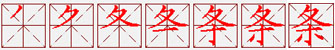 条字的基本解释: ● 条(條)tiáo ㄊㄧㄠˊ ◎ 植物的细长枝:枝条。柳条儿。荆条。 ◎ 泛称条形的东西:条子。面条儿。便(biàn)条儿。金条。铁条。 ◎ 细长的形状:条形。条纹。条案。条几(jī)。条凳。条幅(直挂的长条字画)。苗条。身条。 ◎ 项目,分项目的:条例。条令。条文。条陈(a.分条叙述;b.旧时向上级分条陈述的文件)。 ◎ 层次,秩序:条理。条贯。有条不紊。 ◎ 量词。 ● 条(條)tiāo ㄊㄧㄠˉ ◎ 挑取:“蚕月条叠”。 英文翻译 clause, condition; string, stripe |